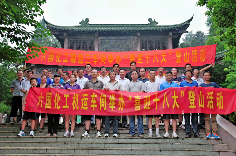 為進一步增強員工的健康意識,豐富員工體育文化生活。日前,z6mg人生就是博化工公司機運車間、磷銨三車間在市筆架山公園,聯合開展“勵志奮斗,迎接十八大”主題登山活動。兩車間50多名職工踴躍報名參加,最終產生男子組前五名,女子組前三名。圖為參加活動人員合影留念。