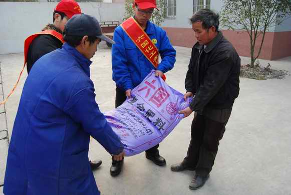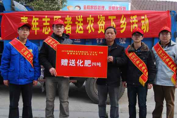 1月10日,z6mg人生就是博化工團委和銅官山化工團委組織青年志愿者,赴銅陵市郊區(qū)五洲村開展“送化肥下鄉(xiāng)”活動,給當?shù)卮迕袼腿?噸化肥和幾十本化肥使用手冊,受到了當?shù)剞r(nóng)民群眾的感謝和好評。圖為銅化青年志愿者向五洲村村民贈送化肥。